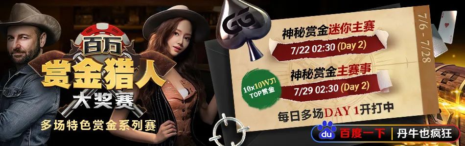 对手Hrabec无奈亮出没有任何摊牌价值的9 High,丹牛成功抓鸡,赢得83BB巨池,并顺利晋级以暂居第17名之姿晋级Day3!